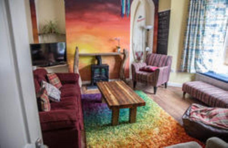 Relaxing social room with TV, board games and book swap as well as a compact sunny garden to sit out in.