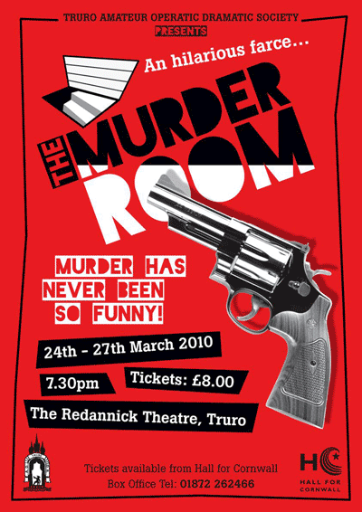 The Murder Room, tells the story of bland Edgar Hollister who marries a gold-digger, Mavis Templeton. After a couple hours of painful marriage, Mavis apparently tries various means to bump off her apparently rich husband. All of this is just apparently, because blank shells might have been in the pistol - who knows? - and maybe the cat didn’t really die when it drank the poisoned cocoa - who knows? - and maybe it was all a dream, or amnesia. The Murder Room has also been described as Abbot and Costello meets Agatha Christie, with a little Monty Python thrown in - Murder has never been this funny!