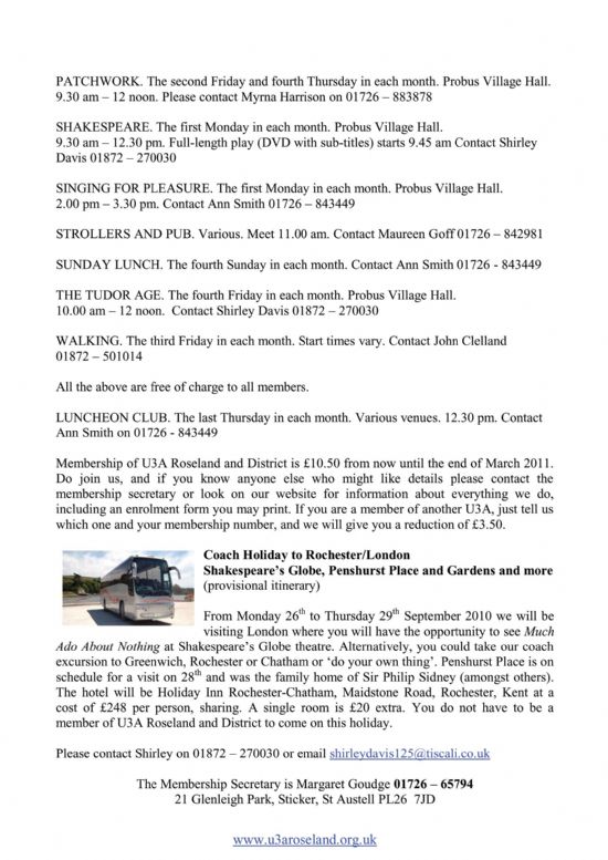 NEWSLETTER February 2011 Diary