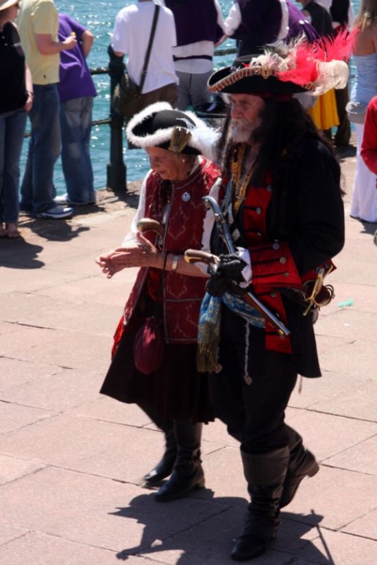 Whole families turned out in full pirate regalia, including a live parrot, to bring the record to Penzance on a gloriously warm, sunny day - Quay Fair Day - the last day of the Golowan Festival.