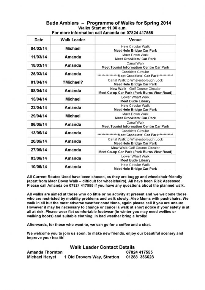 Bude Amblers – Programme of Walks for Spring 2014