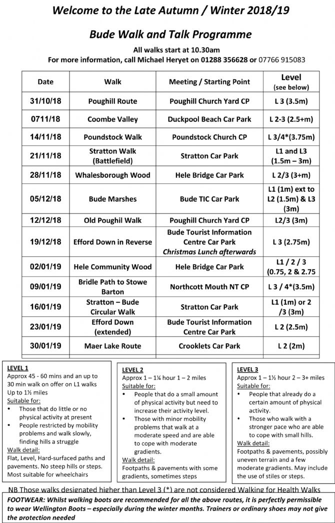 Walks in and around Bude until January 2019