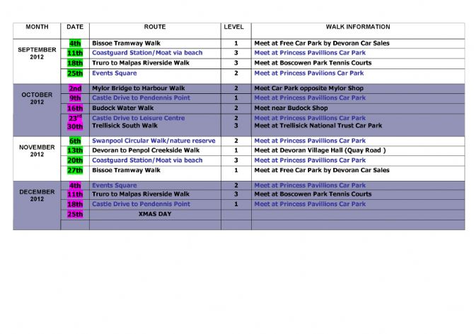 Walks in and around Falmouth from September 2012 to December 2012