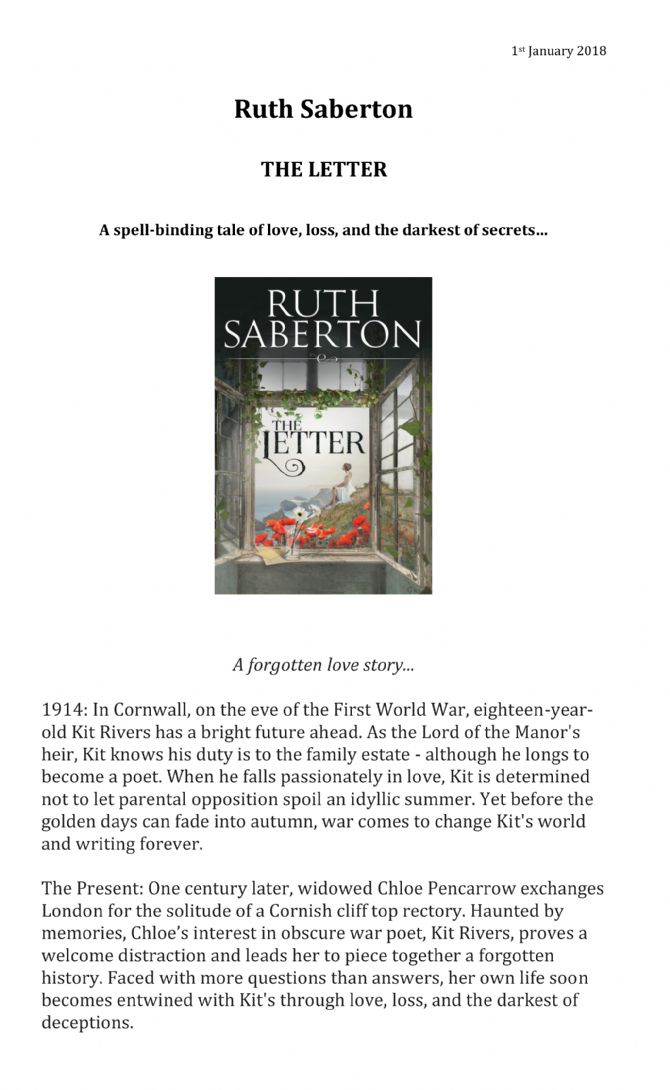 For further information on THE LETTER and Ruth’s other titles, please visit www.ruthsaberton.com or email: admin@ruthsaberton.com