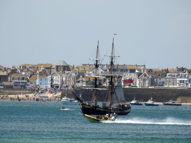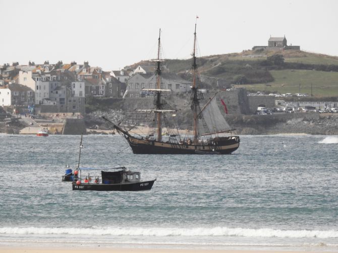 In August 2018, while visiting Porth Kidney Beach at Lelant, we were lucky to see her sailing into St Ives.