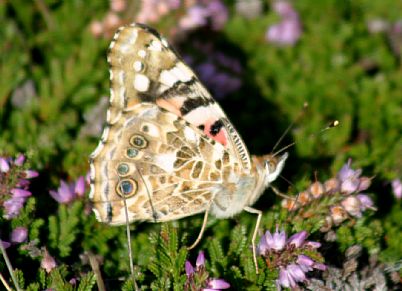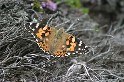Painted Lady (Vanessa cardui) Larvae feed on a variety of plants including Thistles, Mallows, Common Nettle, Viper's-bugloss and some cultivated plants.